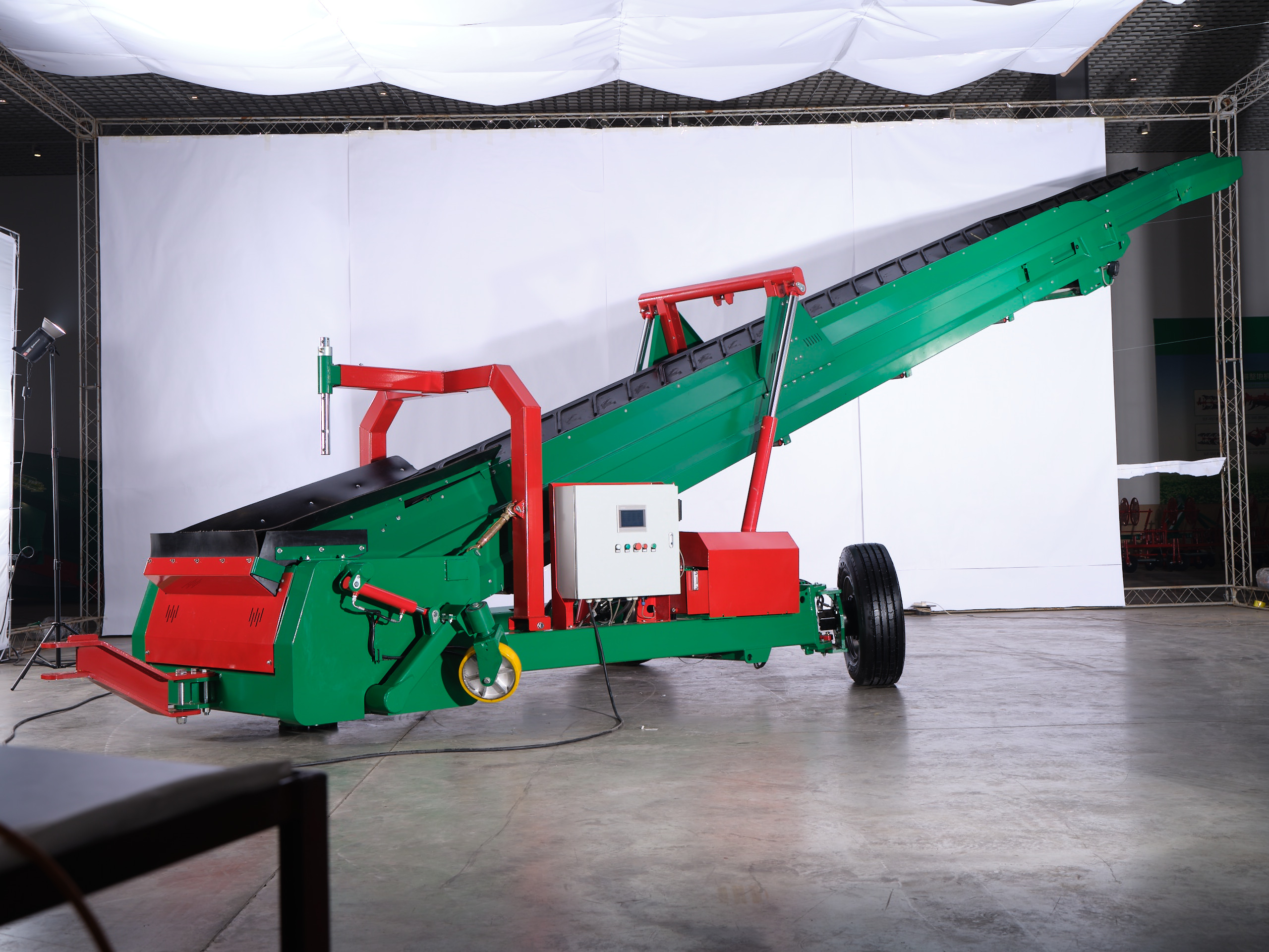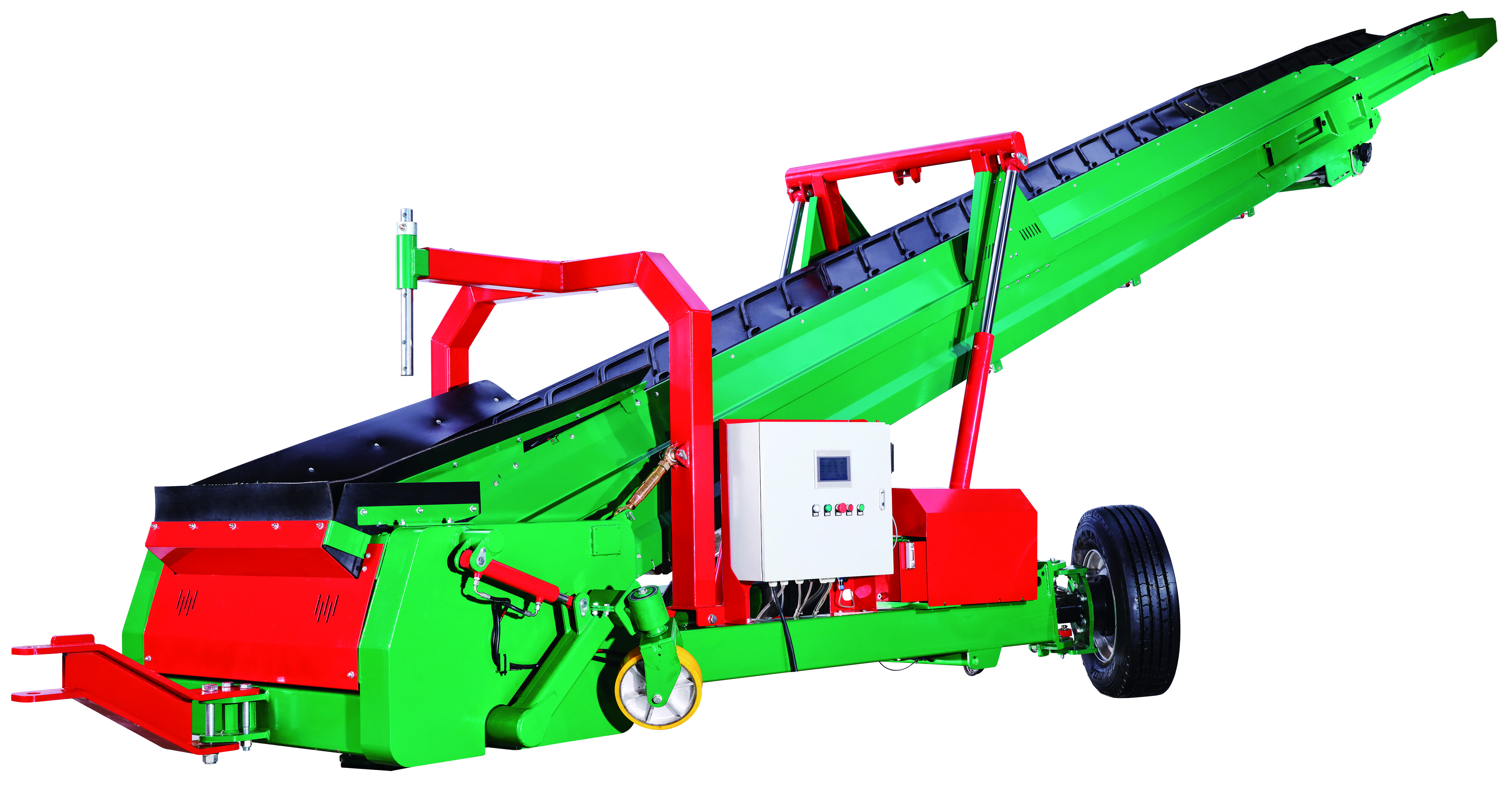 This machine is mainly used for conveying, loading, stacking, and storing potatoes. After the potatoes are transported by the conveyor, the stacker